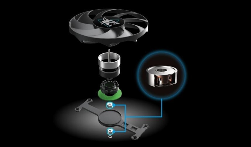 Hellhoundシリーズと同じくリングブレードを採用した90mmファンを実装。こちらは2基搭載。日本メーカー製のデュアルボールベアリングも搭載。インテリジェント・ファン・コントローラーにも対応する。