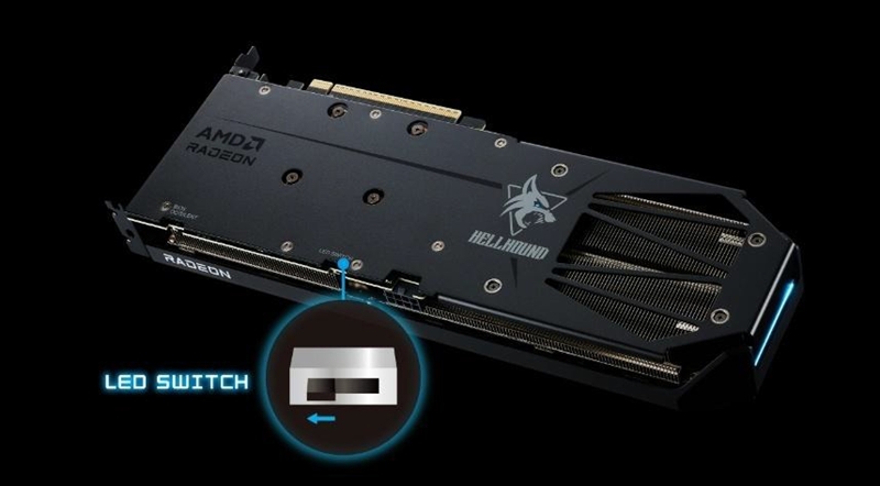 背面には、〈Hellhound〉シリーズのロゴマークをデザインした金属製バックプレートを備え、基板の歪みを防止。排熱も考慮して設計されていとしている。