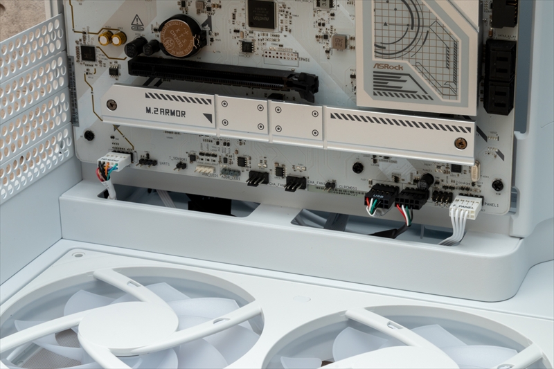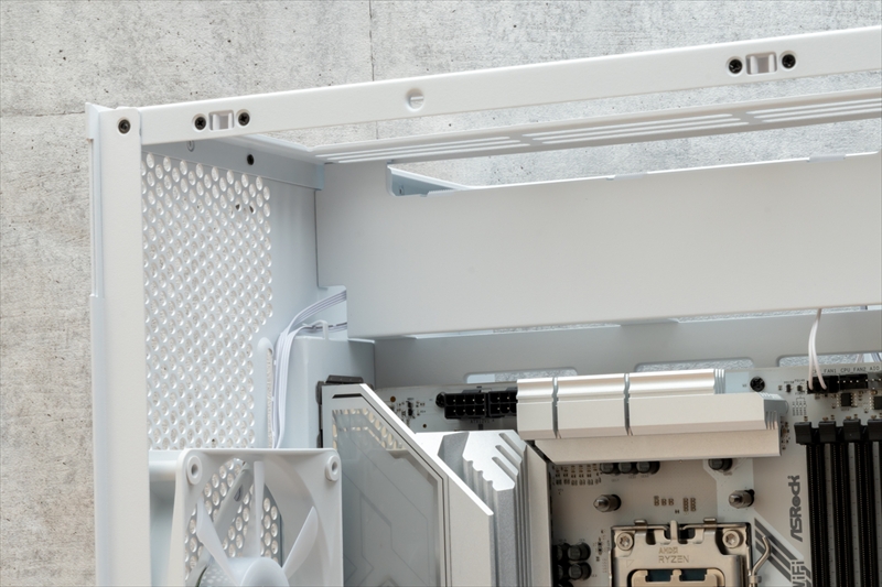 とくに組んでいて、お!コレはと感じたのが、マザーボード取り付けベース周辺のケーブルホールで、フロントインターフェースなどのケーブルを楽に取り回しできた。